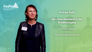Dr. Petra Salesny von Amundi hielt auf der Finpro 2025 einen Vortrag zum Thema Private Debt als neuen Standard beim Vergeben von Krediten.